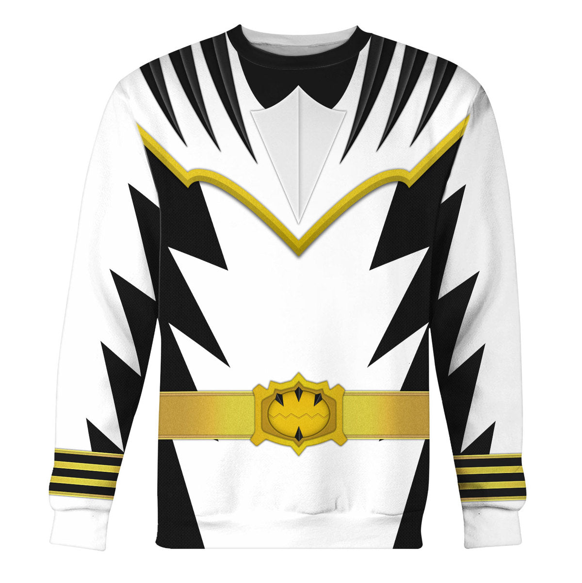 The White Ranger Dino Thunder sweatshirt is a perfect choice for all-over-print apparel lovers, making it a unique gift for fans of bold designs and vibrant colors. With the personal touch of The Halloween Smoke, each piece is crafted just for you, ensuring a one-of-a-kind addition to your wardrobe.