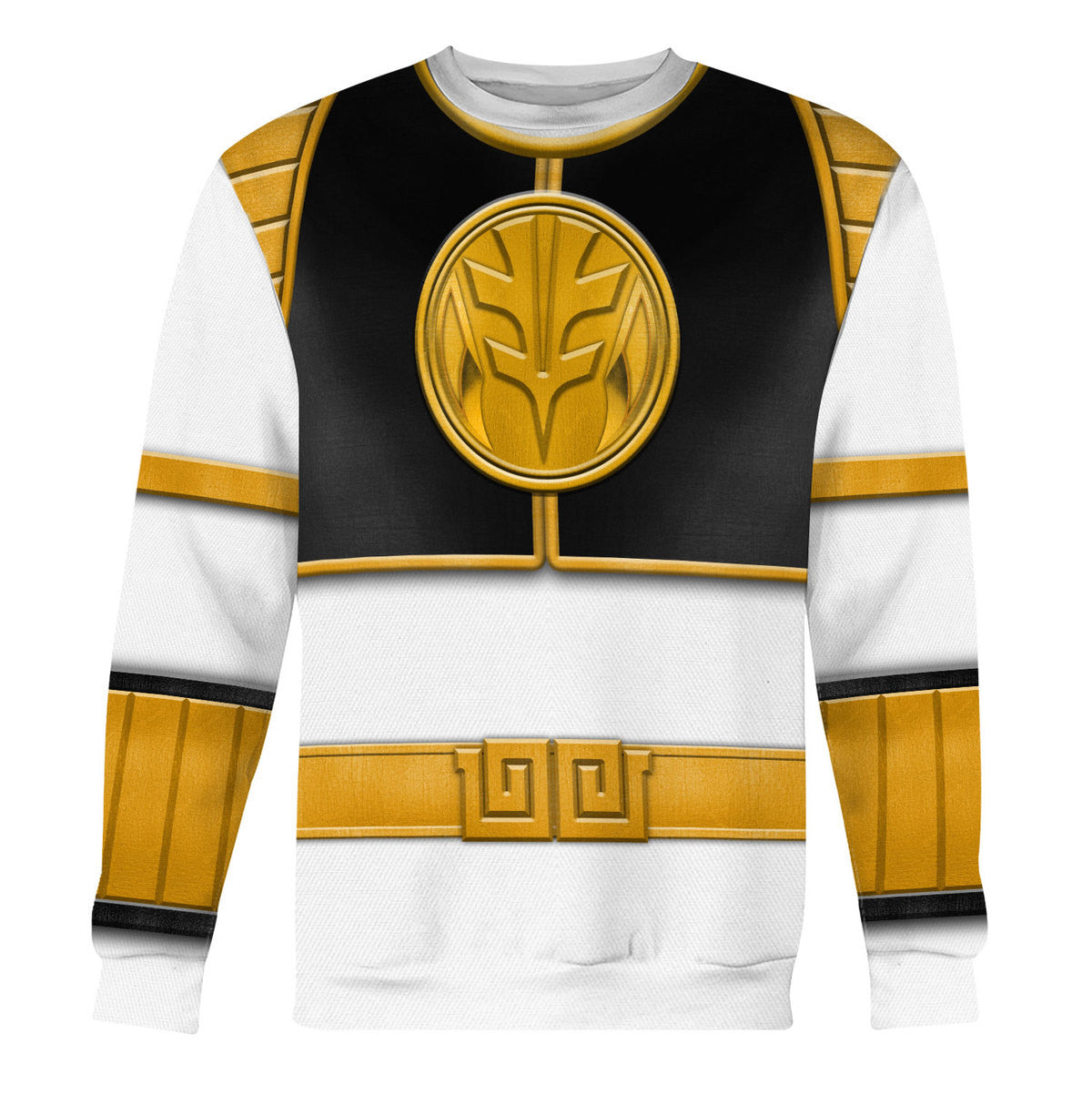 Embrace your love for all-over-print apparel with the White Ranger Mighty Morphin sweatshirt from The Halloween Smoke, making it a unique gift for fans of the iconic series. With the option for personalization, this sweatshirt stands out as a one-of-a-kind piece that showcases your individual style.