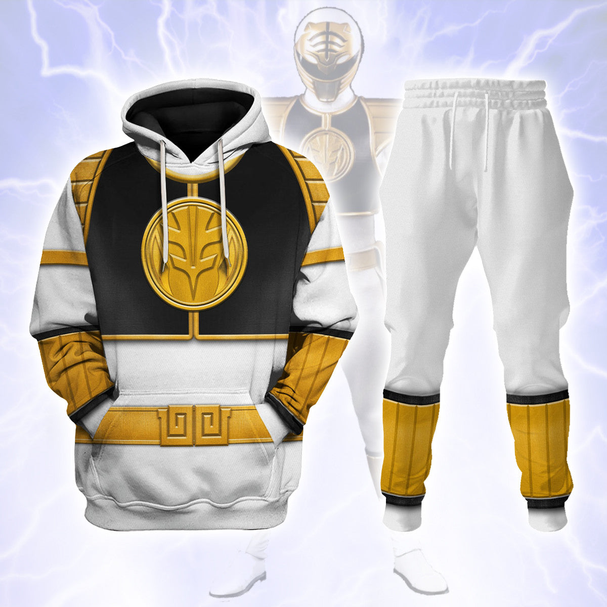 • The Halloween Smoke White Ranger Mighty Morphin track suit brings a legendary superhero look with a matching hoodie and pants inspired by the classic series.