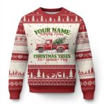 Xmas Family Ugly Christmas Sweater Custom Name Family Farm Xmas Trees Vintage Truck