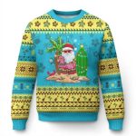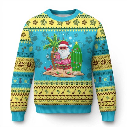 Xmas In Hawaii Ugly Christmas Sweater Flamingo Float Xmas Palm Tree