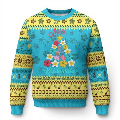 Xmas In Hawaii Ugly Christmas Sweater Tropical Flowers