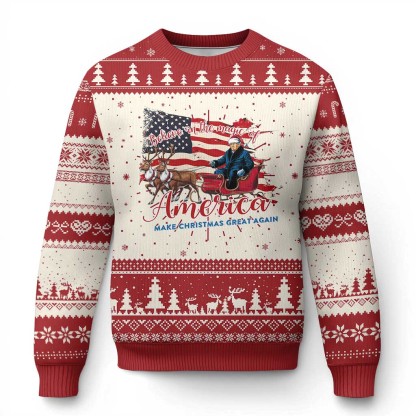 Xmas T Ugly Christmas Sweater Believe In The Magic Of America Make Christmas Great Again