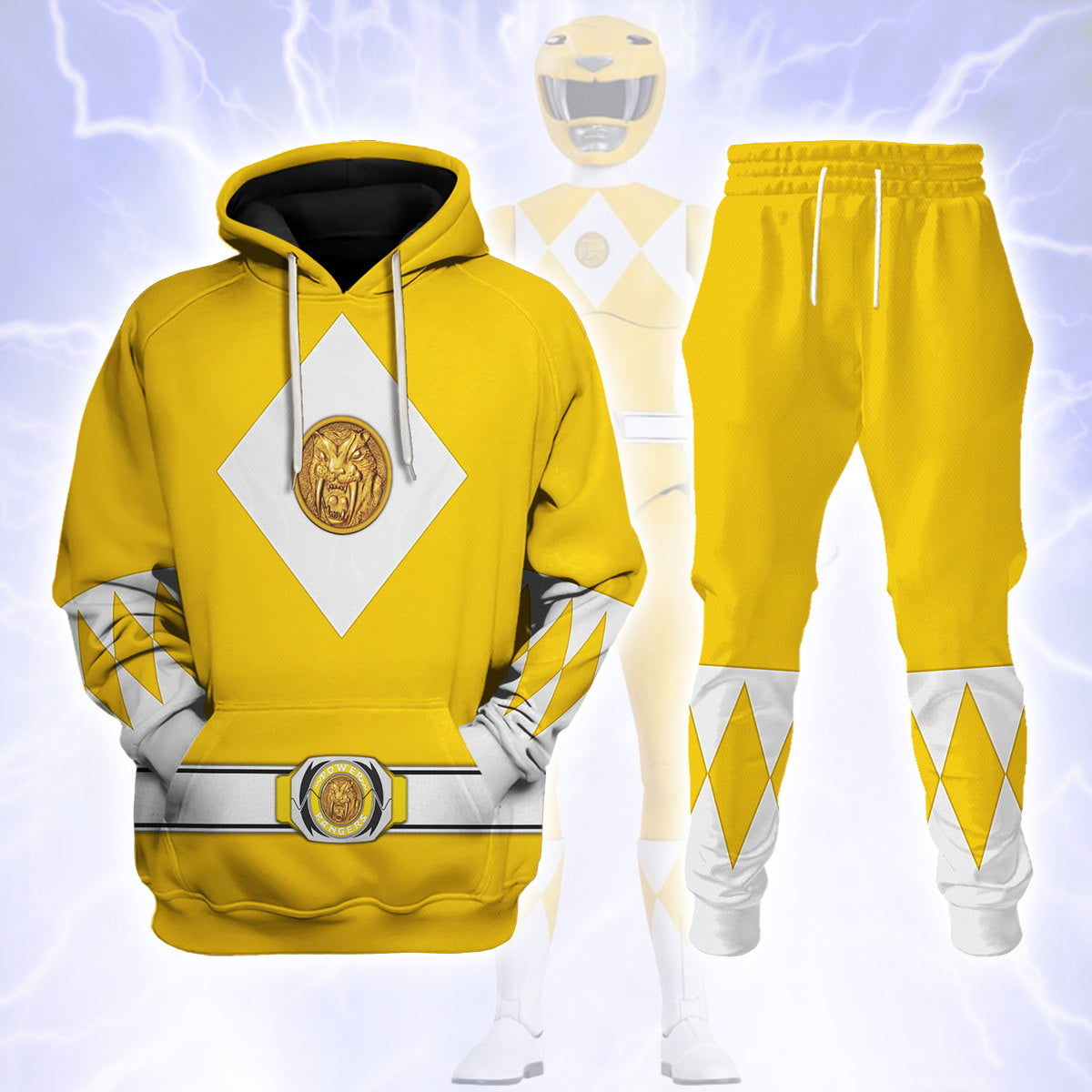 - The Halloween Smoke Yellow Ranger Mighty Morphin The Movie (1995) track suit revives the legendary 90s hero look with a matching hoodie and pants.